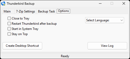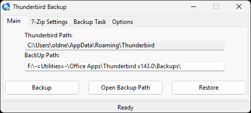 thunderbirdbackup /b - Perform backup to set backup path. If no backup path set, the app will open to allow you to set the path.
