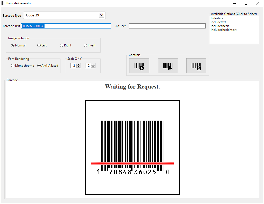 Utility to create barcodes in a variety of formats