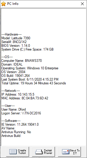 Taskbar icon, mouseover shows PC Info - Click to view: